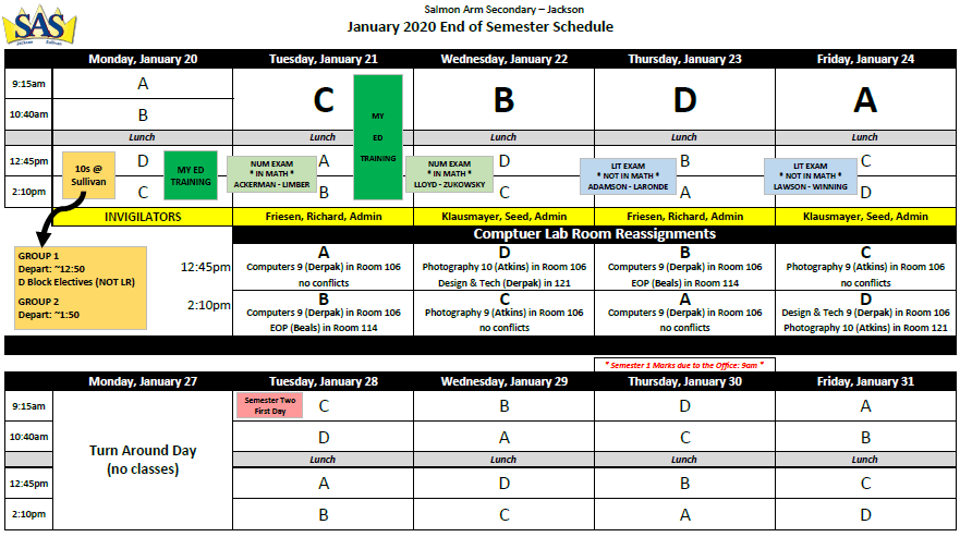 A reminder that next week, January 20-24 is assessment week at Jackson. Regular classes are running, though on a unique assessment week schedule.